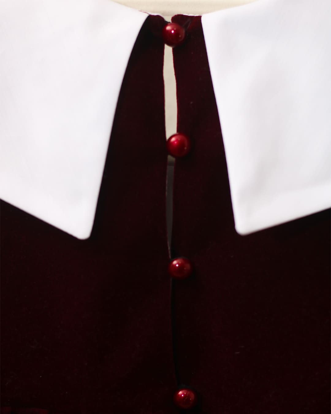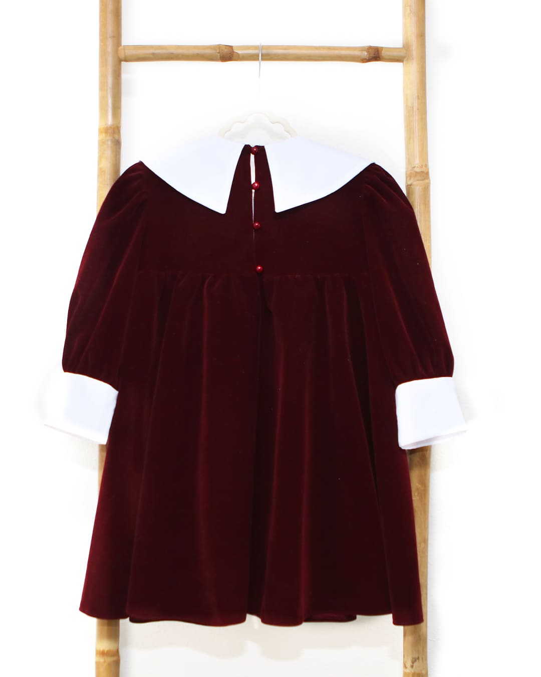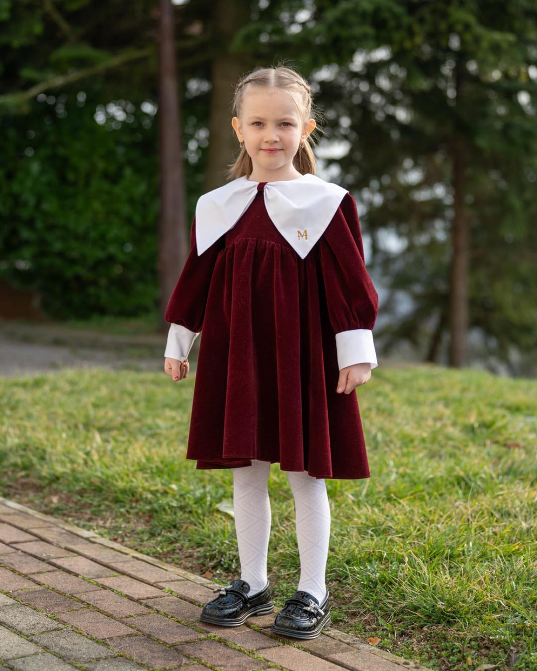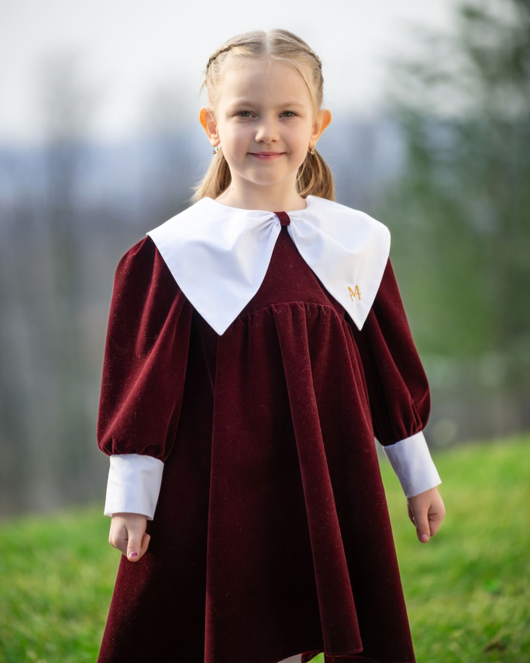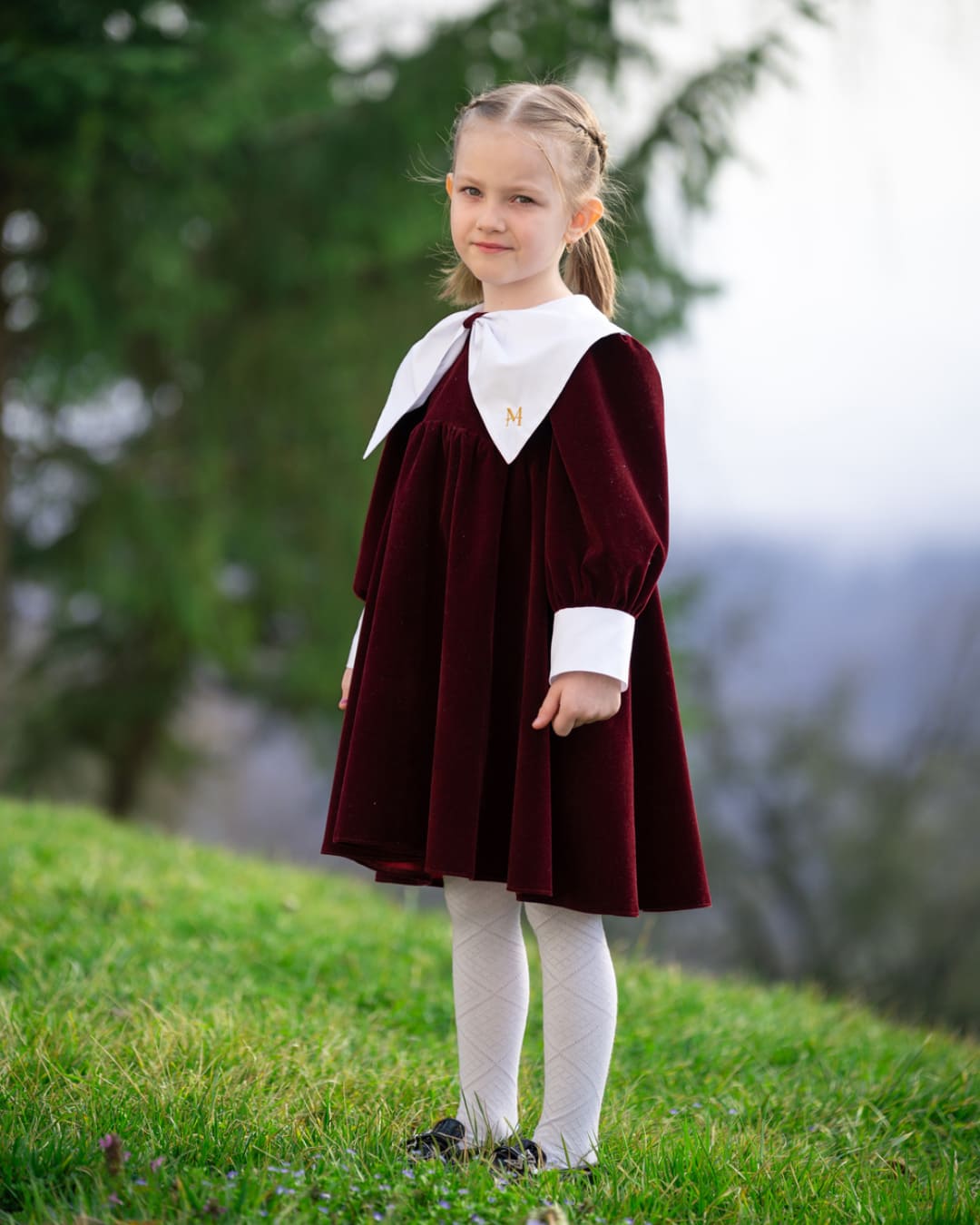 Elegancija i autentičnost su odlike naše haljine “Mia”. Satkana od pliša bez elastina, dok su kragna i krajevi rukava obloženi puplinom koji ovu krasoticu čine neodoljivom. Na poleđini kopčanje na četiri gumba.