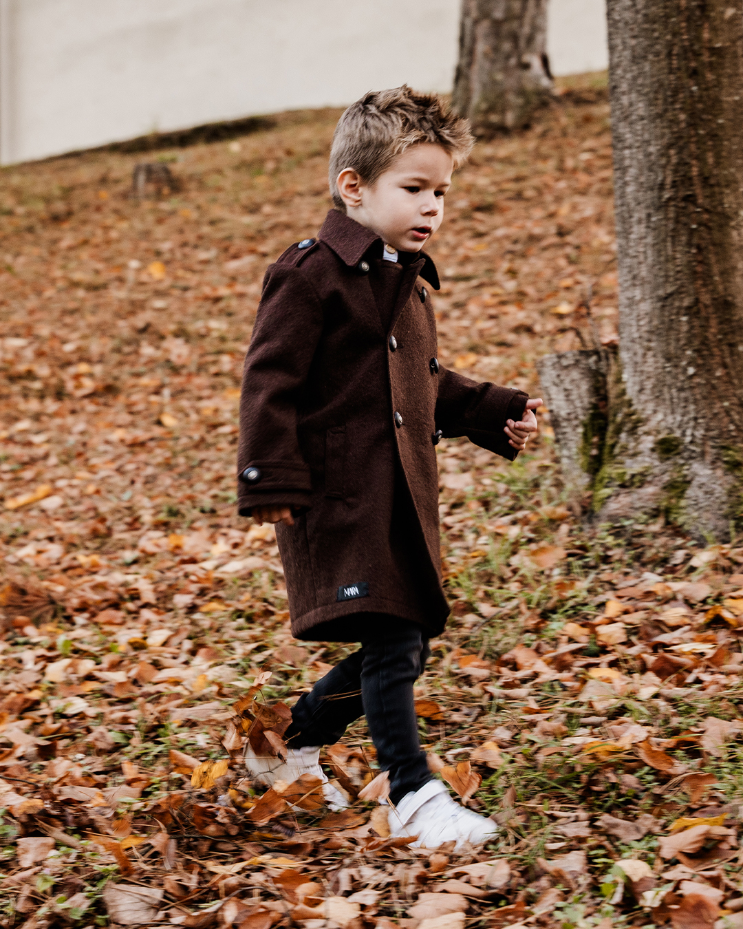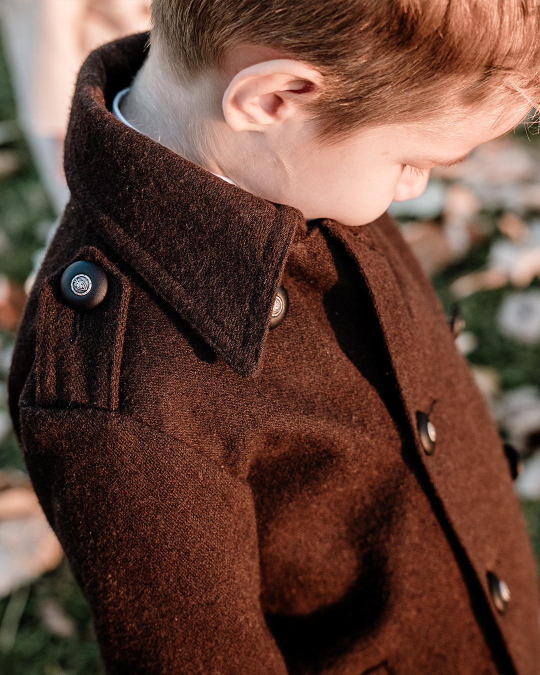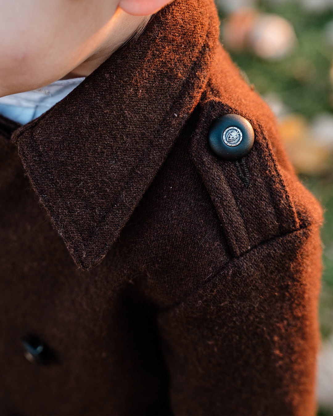 Kaput izrađen od visokokvalitetne čohe sa dvorednim kopčanjem odiše elegancijom i bezvremenskim stilom. Rukavi s patnama i epolete na ramenima daju mu profinjen vojnički karakter, dok pažljivo krojeni detalji ističu klasičnu siluetu. Unutrašnjost je obložena podstavom od 100% pamuka, koja osigurava udobnost i prozračnost.
