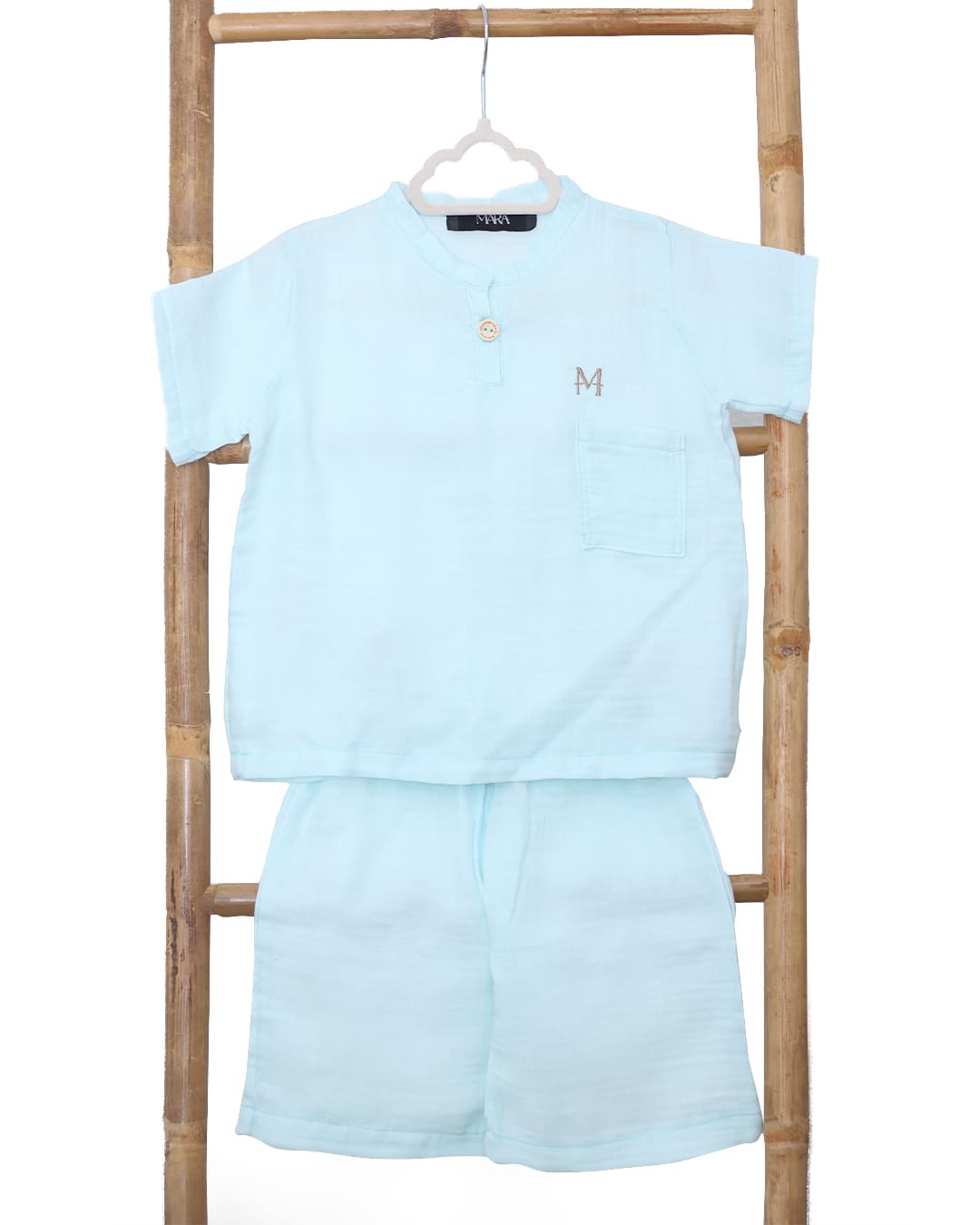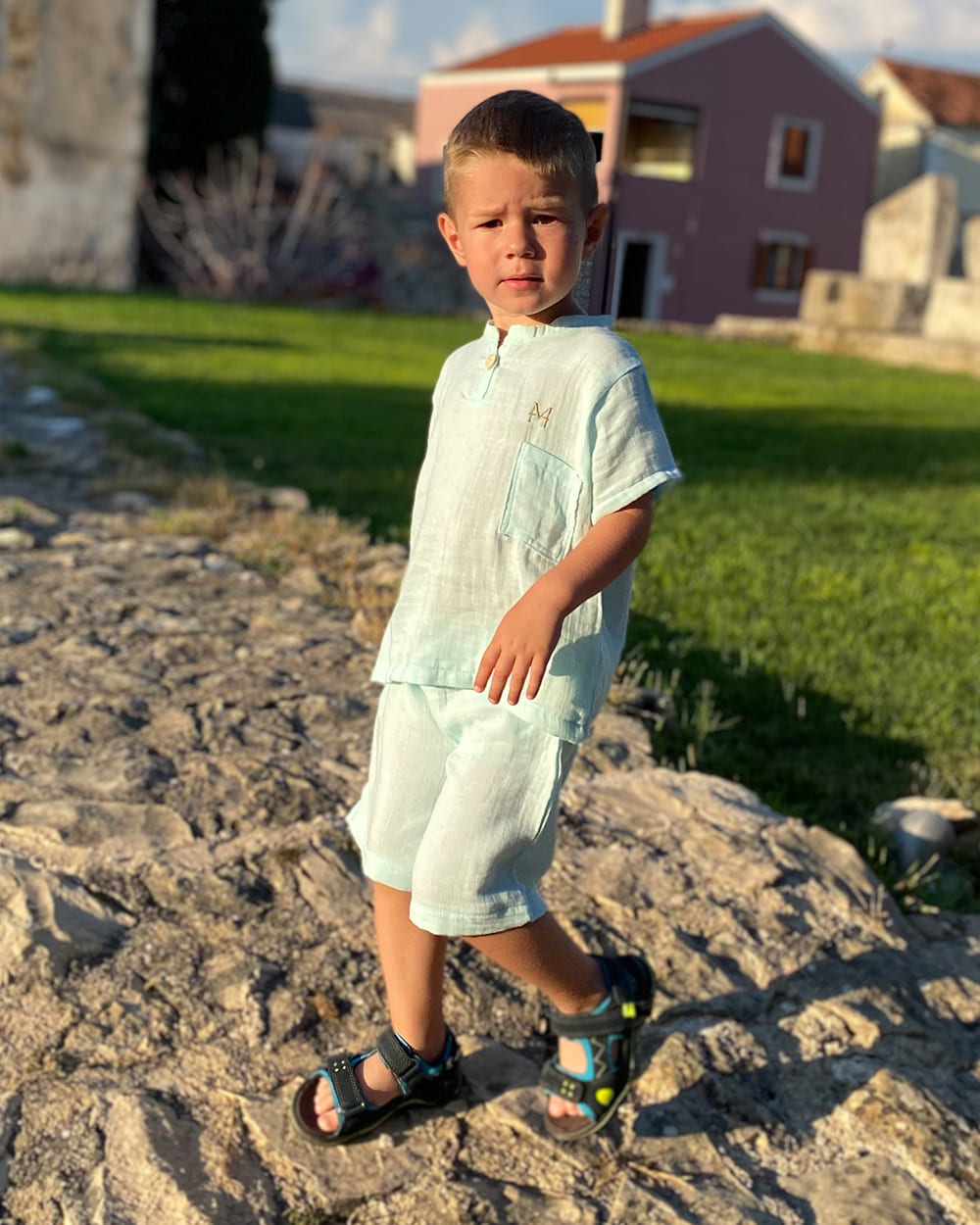Praktičan i udoban komplet za svaki dan, idealan za igru, šetnje i sve avanture. Košuljica jednostavnog kroja s kopčanjem na jedan gumb olakšava oblačenje, dok šorc sa gumom u pasu pruža slobodu i udobnost.