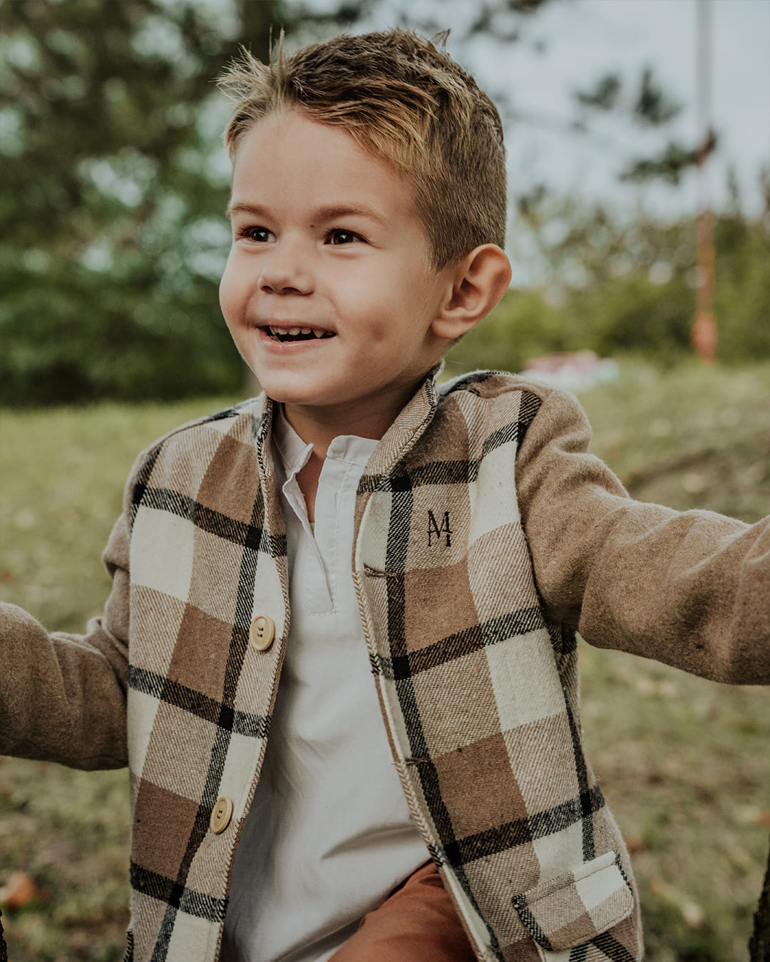 Izrađen od kariranog štofa, osmišljen s posebnom pažnjom prema detaljima i prepoznatljivim Mara potpisom elegancije. Savršen za jesenje dane, donosi toplinu, profinjenost i udobnost u svakom pokretu. Kopčanje na četiri dugmeta i dva diskretna džepa ističu njegov klasičan karakter, dok prisivci na rukavima daju suptilan dodir luksuza.